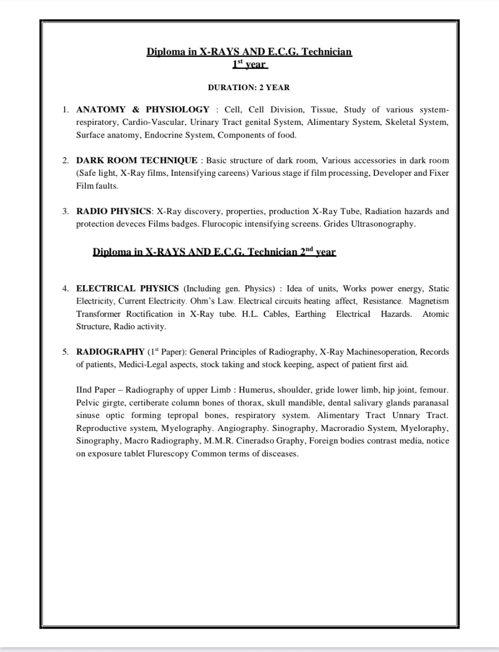 DIPLOMA IN X-RAY & ECG TECHNICIAN